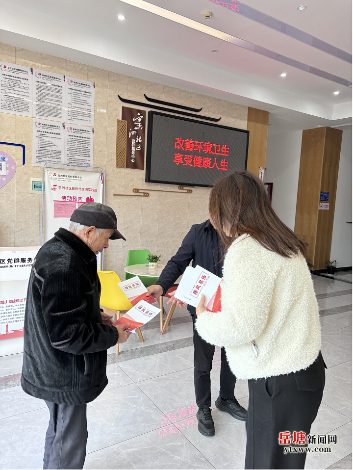 岳塘融媒11月19日讯(通讯员:陈灿)为破除陈规陋习、弘扬文明新风,近日,昭山镇窑洲社区开展“移风易俗”宣传活动,让文明理念扎根居民心中。
