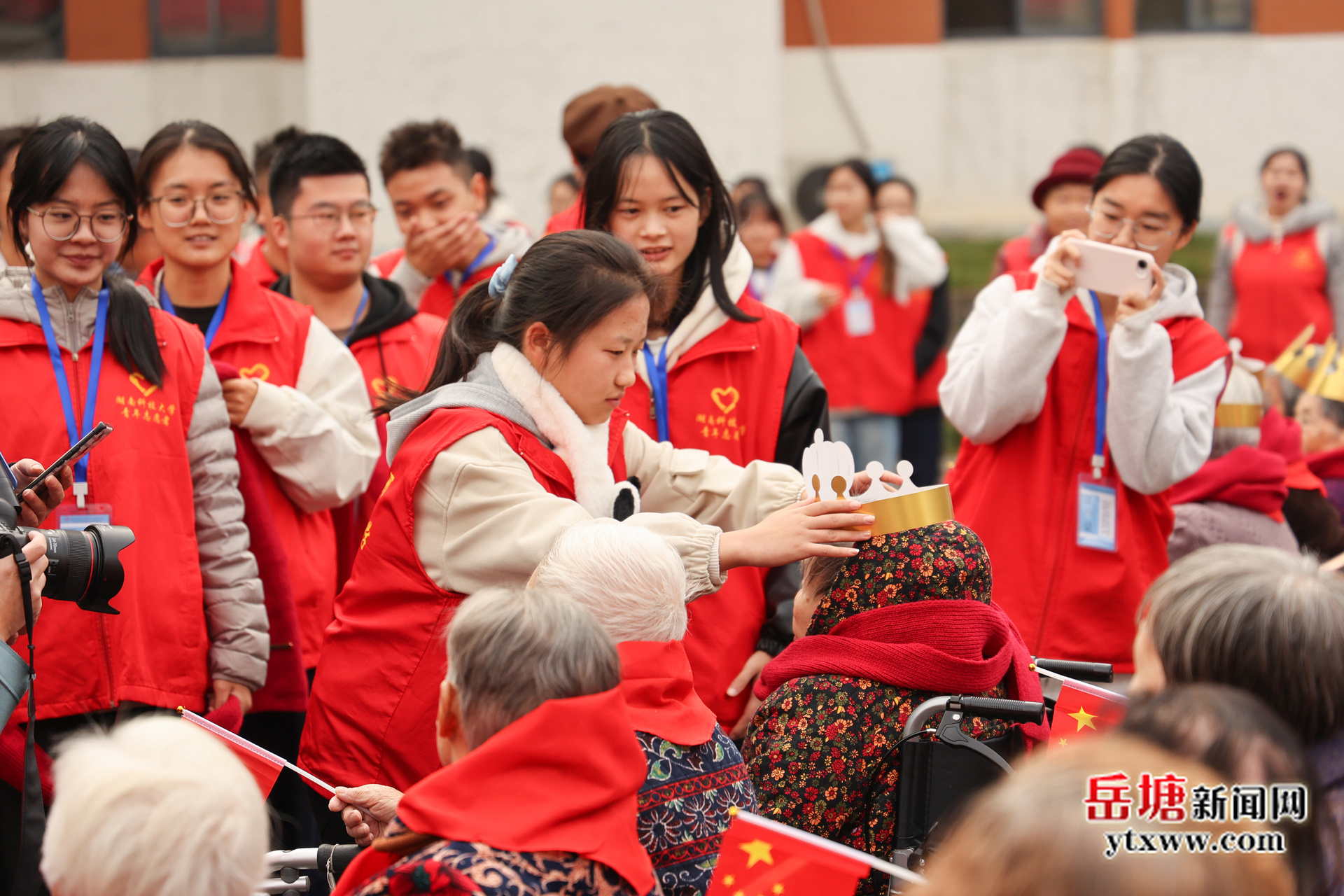 岳塘融媒11月26日讯(记者 朱维 通讯员 胡志诚)近日,岳塘区摄影家协会“情系夕阳”志愿服务队携手湖南科技大学37名大学生志愿者,走进湘潭夕乐苑天伦养护院,精心举办“情系夕阳”公益生日会,为院内18位寿星长者送上一场充满温情与欢乐的生日庆典,让初冬的养护院暖意融融、笑语飞扬。