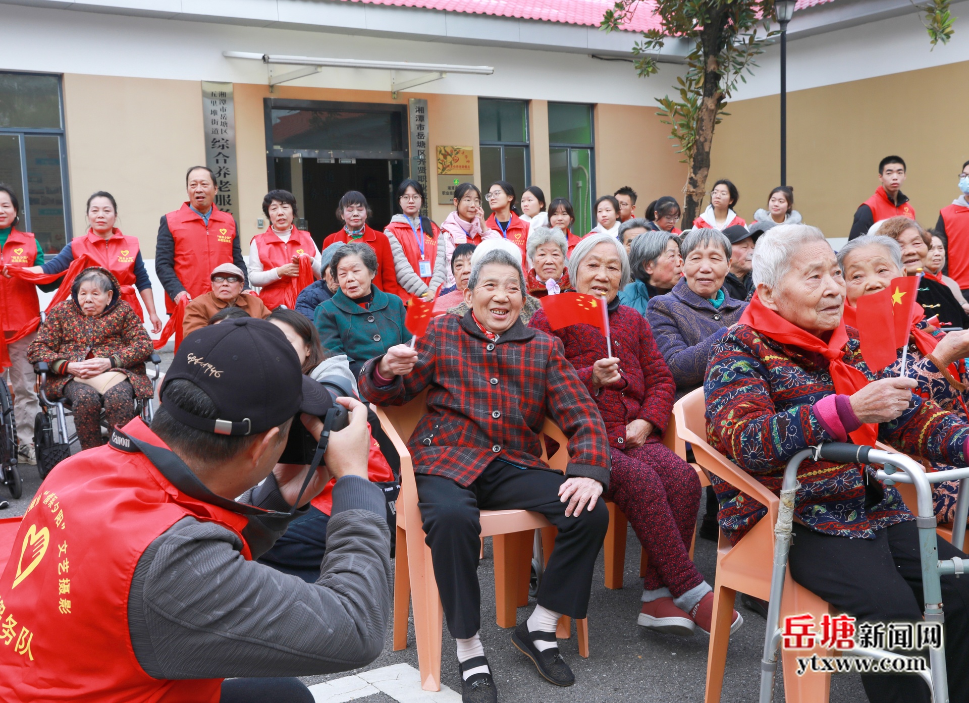 作为本次公益活动的发起方与组织方,岳塘区摄影家协会“情系夕阳”志愿服务队不仅带来了精彩节目,更以专业的摄影视角,为老人们定格幸福瞬间。活动现场,协会志愿者们手捧鲜艳的红领巾,逐一为寿星们佩戴。指尖轻绕间,鲜红的绸带与岁月的皱纹相映成趣,老人们抬手抚过胸前的红领巾,眼底瞬间漾起孩童般的光亮,仿佛重回意气风发的年少时光。志愿者们抢抓这一动人场景,快门声与老人们的笑声交织,将这份跨越时空的童真永久留存。