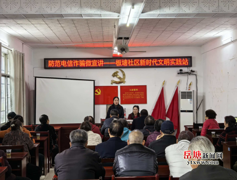 岳塘融媒12月24日讯(通讯员:陈东)为提高居民识骗防骗意识,近日,板塘社区新时代文明实践站组织开展了一系列防范电信诈骗宣传活动,着力筑牢社区安全防线。