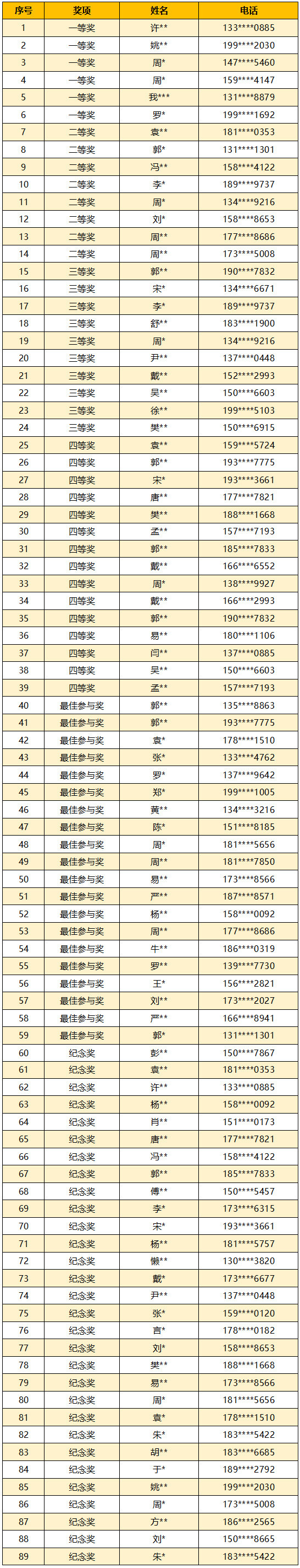温馨提示:请获奖人员在上述时间内赴指定地点凭借获奖信息领取奖品(不支持邮寄),逾期未领取视为主动放弃,奖品不再补发。活动领奖联系方式:55568165。