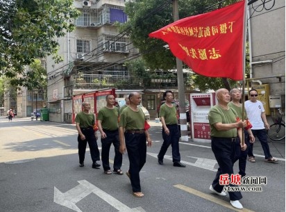 以国企退休党员为主的退役军人服务队穿梭在小区楼栋间开展巡逻