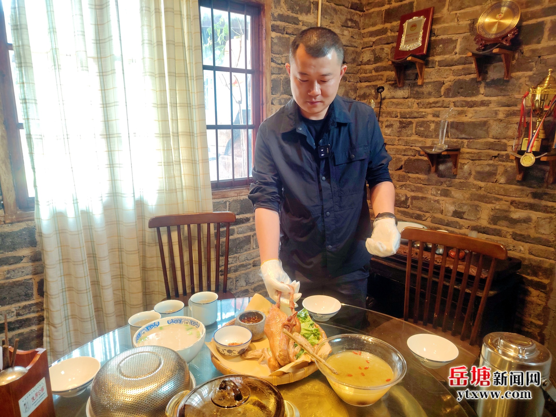说起饭铺的招牌菜,陈林如数家珍:柴火烤鸡要在柴火灶边慢烤40分钟,烤出的油水汇成透鲜的原汤,撕开时皮酥肉嫩,蘸上特调酱汁“韵足了味”;百合牛肉用新鲜牛肉配脆嫩百合,柴火快炒后肉嫩不柴,是客人进店的必吃款;生腌河虾选的是现捞小河虾,料汁浸透虾肉,鲜辣开胃一口一个停不下来。更让食客惊喜的是,跟着“湘超”吃正宗湘潭菜,来牛角塘饭铺凭“湘超”门票,就能免费吃到招牌柴火烤鸡。