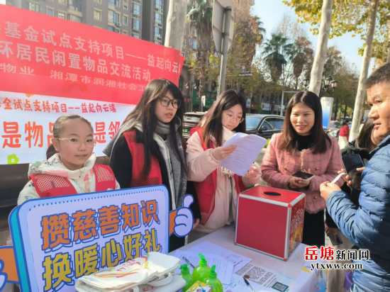 岳塘融媒12月18日讯(通讯员:莫艳平 鲁芹芹)近日,宝塔街道云峰社区联合湘潭市润湘社会工作服务中心依托“益起向云端”社区慈善试点项目,开展“邻里益市·爱心循环”闲置物品交换活动。此次活动以“闲置换所需,爱心传万家”为主题,是社区深耕慈善事业、构建“资源循环、爱心流动”公益生态的关键实践,既打通闲置物品流转渠道,更以多元形式激活邻里善意,为社区慈善基金注入持续动力。
