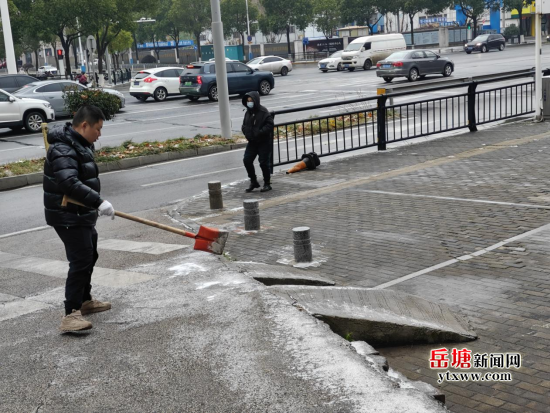 岳塘融媒1月21日讯(通讯员:凌轩)近日寒潮来袭,气温骤降,雨雪相态复杂,给居民出行带来多重安全隐患。为筑牢低温雨雪冰冻天气安全防线,全力守护辖区居民生命财产安全,宝塔街道红旗社区迅速组织力量,对辖区内主次干道、人行道、上下坡道及台阶等重点区域开展铲雪除冰作业,并同步进行撒盐防冻处理,全力保障居民出行安全。