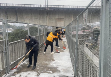 针对辖区农村道路、铁路附属人行天桥等易凝冻重点区域,街道迅速集结工作人员与志愿者,组织在沪昆铁路人行天桥开展撒盐除冰作业。现场,工作人员顶风冒寒,手持铁锹、扫帚等工具铲除桥面冰层,同步均匀撒布工业盐与融雪剂,加速冰层消融。据统计,此次作业累计消耗工业盐、融雪剂6包,桥面凝冻风险被彻底化解,周边村民、学生的出行安全得到切实保障。与此同时,街道平安法治和应急管理办启动应急备勤机制,全员在岗值守,对铁路沿线重点路段、关键点位开展全天候不间断巡查,做到“发现一处、处置一处”。工作人员还加强对过往行人的安全劝导,告知群众如遇紧急情况可随时联系街道,确保应急响应及时高效。