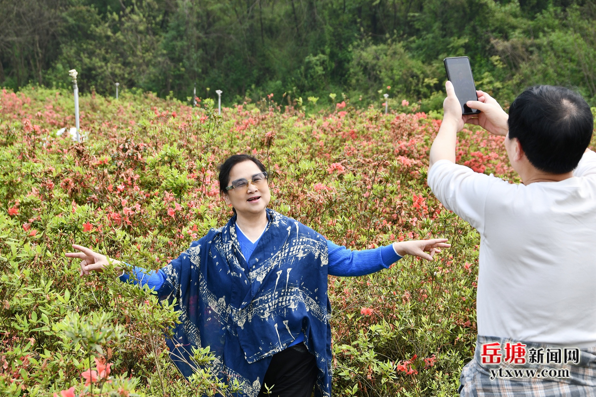 岳塘融媒4月9日讯(记者 彭玲莉)连日来,岳塘区昭山镇高峰村映天红苗木基地内,数十万株杜鹃花竞相绽放,将连绵山野染成一片绚烂的红色海洋。粉若云霞、红似烈焰,花海与青翠田园相映成趣,构成一幅动人的春日画卷,吸引长株潭等地游客纷至沓来。