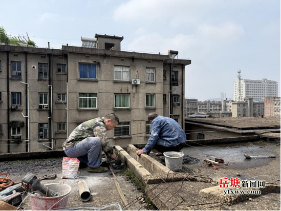 经了解,该小区原为五菱机械有限公司职工宿舍,现由湘电集团有限公司托管。安乐社区党总支书记随即与湘电集团相关负责人对接沟通,详细说明居民实际困难与维修诉求,积极争取企业支持,搭建起居民与责任单位的沟通桥梁。湘电集团在了解情况后全力配合社区工作,安排专业维修人员到现场进行勘查,并制定了外墙防水维修方案。在社区党总支的协调与跟进下,维修工作迅速展开。施工人员对渗水点进行修缮,彻底解决了雨水渗漏隐患。