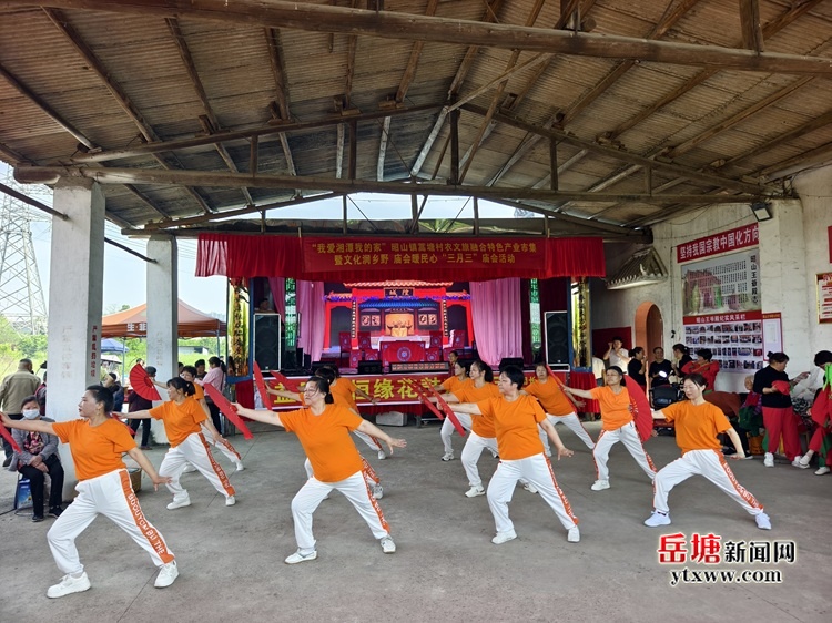 戏台前人头攒动,传统花鼓戏的唱腔婉转悠扬,演员们身着色彩鲜亮的戏服,以一招一式演绎着经典剧目,台下的老戏迷们看得津津有味,掌声与喝彩声此起彼伏。广场上,腰鼓队的队员们身着红衣,腰系彩绸,鼓声铿锵有力,节奏欢快热烈;太极扇表演则刚柔并济,一招一式尽显从容,动静之间勾勒出乡村文化生活的鲜活图景。这些带着泥土气息的民俗节目,既展现了当地群众的精神风貌,也唤醒了大家对传统民俗文化的共同记忆。