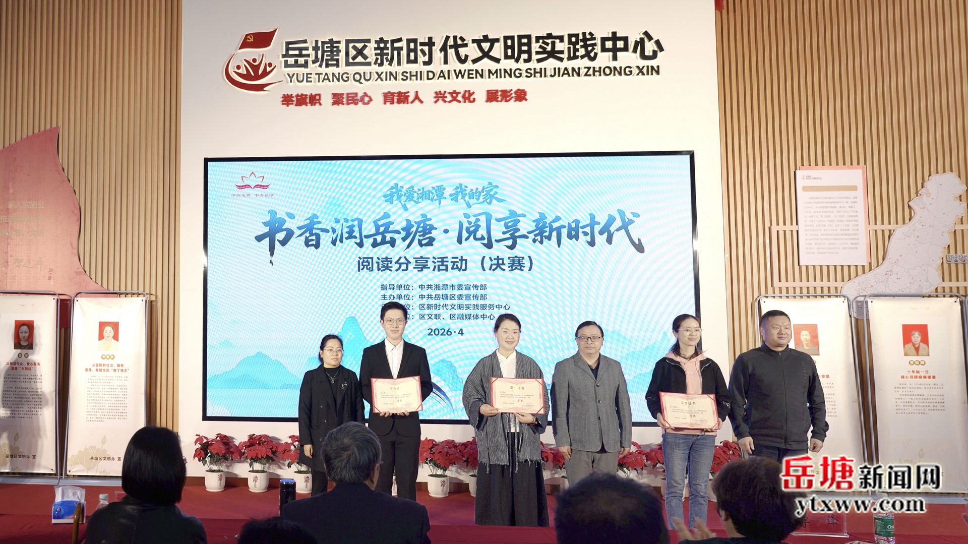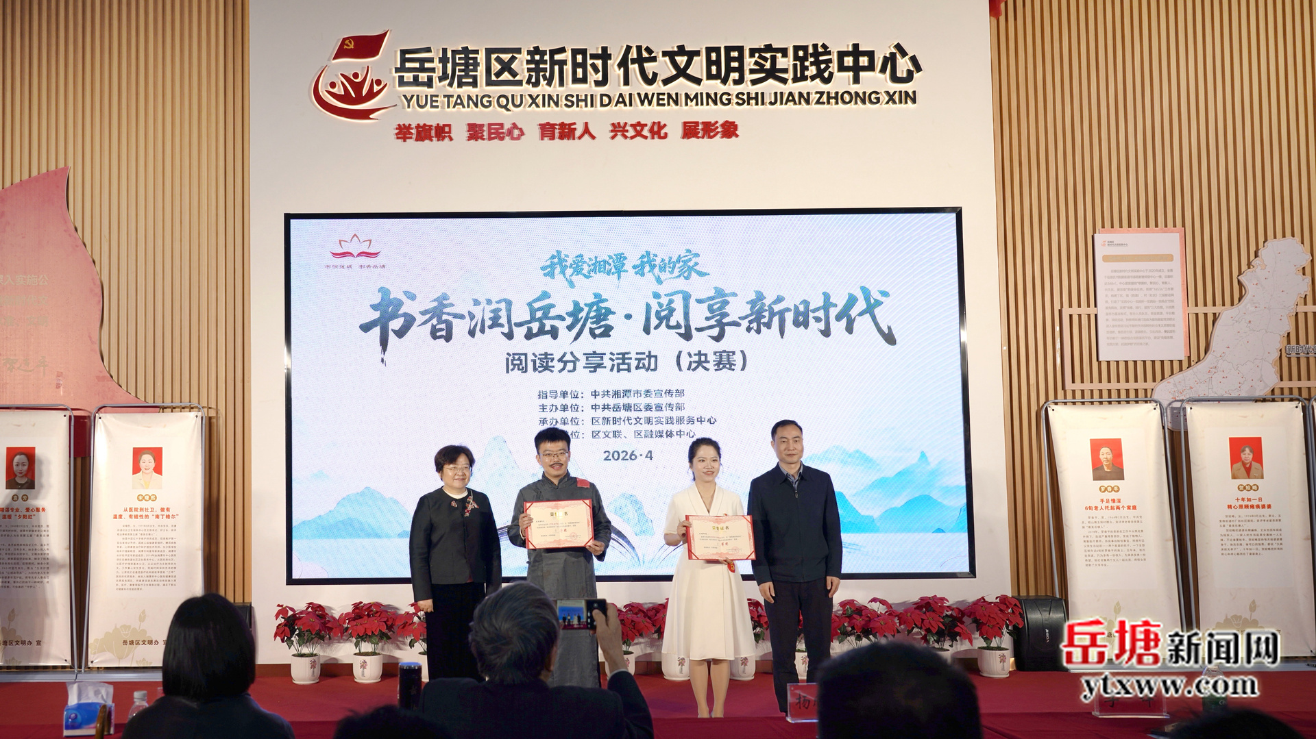 岳塘融媒4月21日讯(记者 郭奕含)4月21日上午,“我爱湘潭我的家”——“书香润岳塘·阅享新时代”阅读分享活动(决赛)在区新时代文明实践服务中心精彩上演。湘潭市委宣传部副部长、市新闻出版(版权)局局长李锋,岳塘区委常委、宣传部部长杨欣荣出席活动。