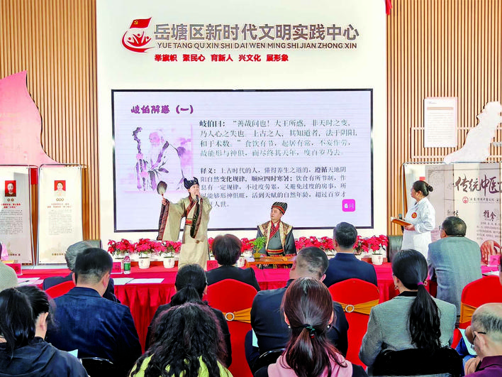 岳塘区卫生健康局代表队以情景再现方式解读《黄帝内经》。(本报记者 谢雨芬 摄)