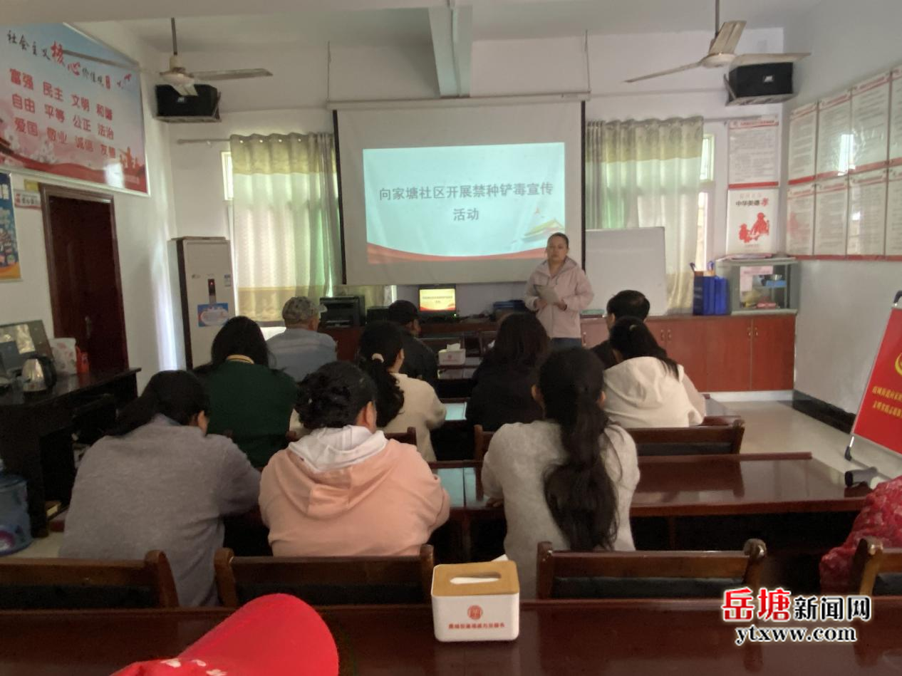 岳塘融媒4月24日讯(通讯员:陶莎)为从源头遏制非法种植毒品原植物行为,筑牢辖区禁毒安全防线,近期,岳塘区霞城街道向家塘社区扎实开展禁种铲毒专项工作。