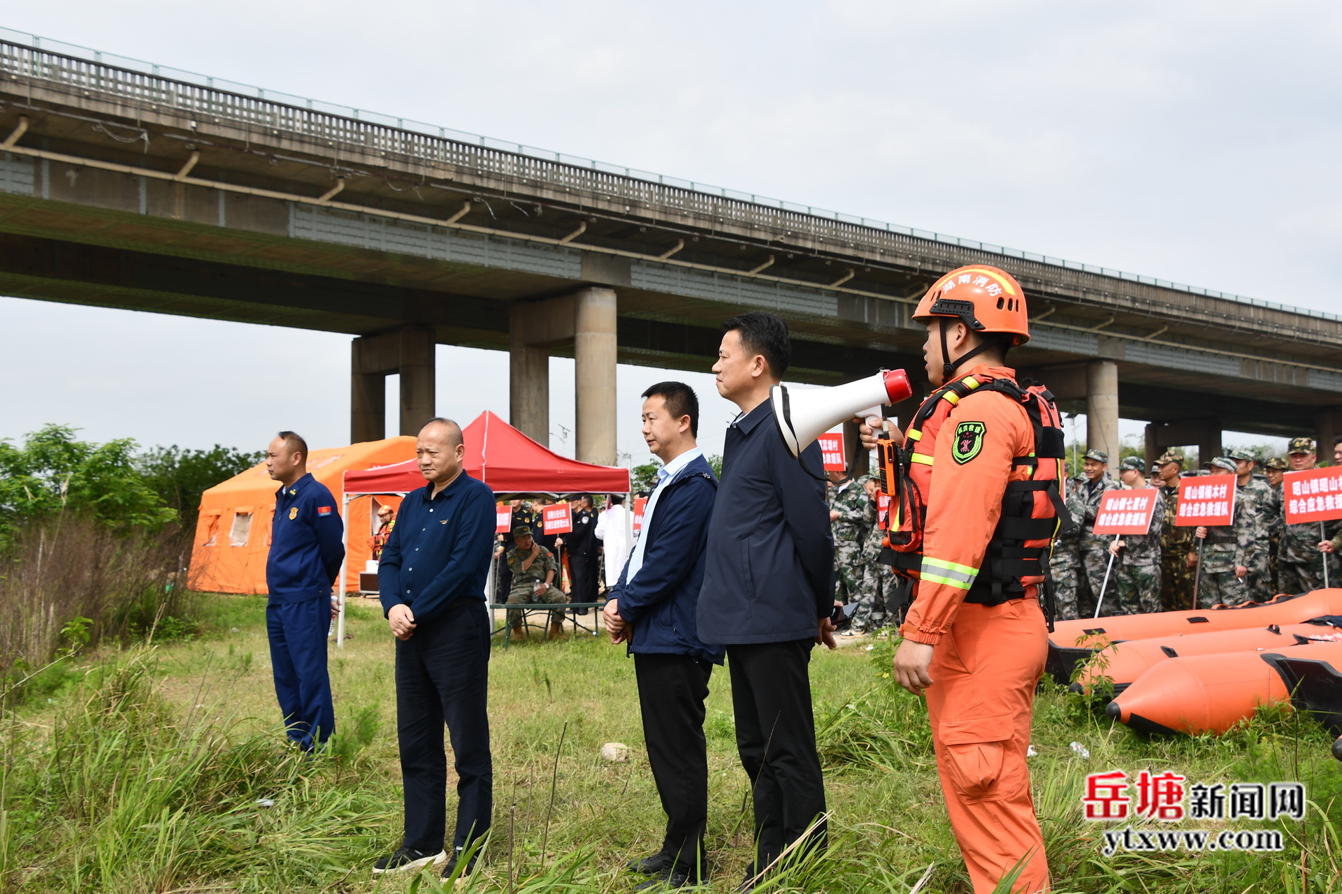 岳塘融媒4月24日讯(记者 张孟成 通讯员 陈妮)为全面提升防汛应急处置能力与军地协同救援水平,切实筑牢安全度汛防线、保障人民群众生命财产安全,4月24日下午,岳塘区在荷塘街道沪昆高速竹埠港大桥下,举行2026年岳塘区防汛抢险军地综合应急演练。岳塘区委常委、常务副区长唐俊杰出席并宣布演练正式开始。