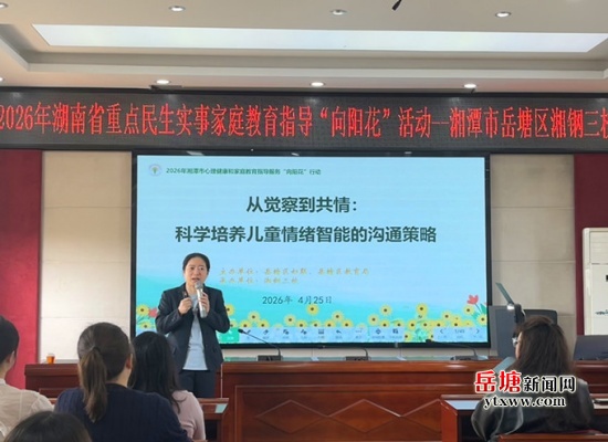 岳塘融媒4月26日讯(通讯员:杨任珍)为深入推进湖南省重点民生实事家庭教育指导“向阳花行动”进校园工作,切实助力家校协同育人,近日,一场主题鲜明、干货满满的家庭教育专题讲座在湘潭市岳塘区湘钢三校霞光校区顺利举行。活动旨在引导家长科学读懂孩子情绪,构建和谐亲密的亲子关系。