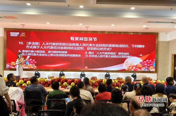 为增强互动性,活动还设置了有奖问答环节,题目涵盖民生热点与法律常识。例如,结合东坪街道今年6月通过居民议事会票决产生2025年民生实事项目的实践,问题“湘潭市人大‘五五工作法’中实施票决‘五单’流程的第一项是什么?”引发居民积极参与,在互动中加深了居民对基层民主议事程序的理解。